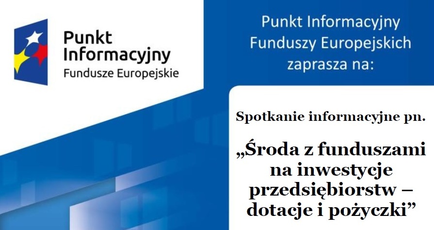 Lokalny Punkt Informacyjny Funduszy Europejskich w Szczecinku we współpracy ze Starostwem Powiatowym w Szczecinku serdecznie zaprasza na spotkanie informacyjne pn.: „Środa z funduszami na inwestycje przedsiębiorstw – dotacje i pożyczki”, które odbędzie się 09 listopada br. o godz. 10:00, w sali konferencyjnej nr 202 Starostwa Powiatowego w Szczecinku przy 28 Lutego 16.