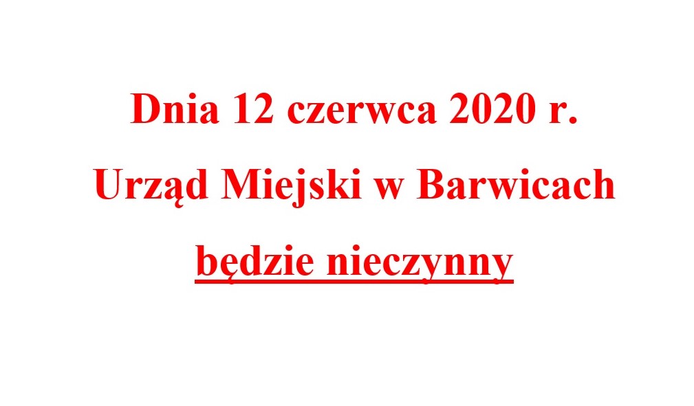 12 czerwca 2020 r. Urząd Miejski w Barwicach będzie nieczynny.