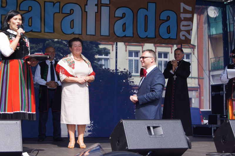 Następnie na Placu Wolności rozpoczęła się Parafiada, czyli czas radosnego świętowania parafian i gości. Wszystko rozpoczęło się od inscenizacji przygotowania ks. proboszcza Tomasza Jaskółki do przyjęcia I Komunii Świętej (w nawiązaniu do ubiegłorocznej inscenizacji przyjęcia chrztu). Przedstawienie to nawiązywało do tegorocznego hasła roku św. brata Alberta: "Być dobrym, jak chleb". Następnie Biskup, Proboszcz oraz Burmistrz i Starosta dzielili się chlebem z obecnymi na placu mieszkańcami.