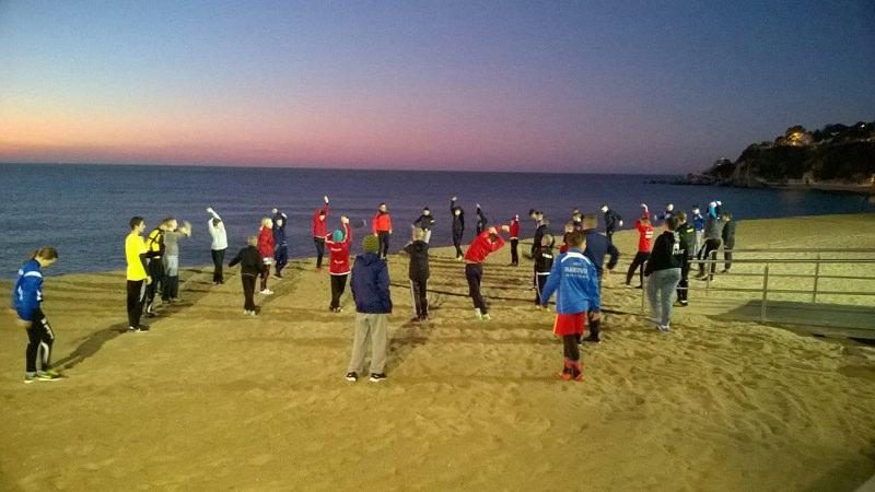 Zawodnicy dzień rozpoczynali od rannego biegania uliczkami przepięknego miasteczka oraz nad brzegiem Morza Śródziemnego. W ciągu dnia mieli jeszcze dwie jednostki treningowe na boisku trawiastym, a także na plaży. Mimo, że w Polsce jest dość zimno, w Hiszpanii zawodnicy po treningu kąpali się w morzu (temperatura powietrza wynosiła ponad 20 stopni) Uczestnicy mieli możliwość zwiedzić przepiękne zakątki miasta, podziwiać krajobrazy. W trakcie obozu jeden dzień poświęcony był również na wyjazd do Barcelony, szybkie zwiedzanie no i oczywiście wejście na Camp Nou z wielkim widowiskiem jakim był mecz w półfinale Pucharu Króla: FC Barcelona – Valencia zakończony zwycięstwem Barcy aż 7:0. Bramki strzelali: 4 Suarez i 3 Messi. Do tego jeszcze niestrzelony przez Neymara karny i poprzeczka Messiego. Niesamowite przeżycie.