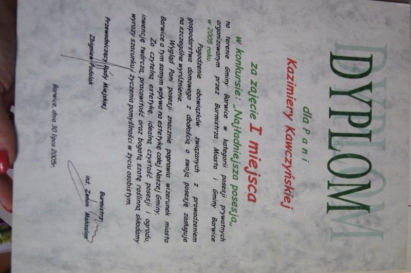 Pani Kazimiera pracowała w  barwickiej wytwórni wody, piwa i oranżady. Gdy o tym wspomnieliśmy wśród gości zrobiło się gwarno. Przypomnieli sobie dzieciństwo i smak barwickiej oranżady, która najlepiej smakowała pita prosto z butelki. Pani Kazimiera pracowała też w miejscowym Intropolu. Zajmowała się wychowaniem dzieci i dbaniem o dom. Do dziś zachwyca jej piękny zakątek koło domu, pełen kwiatów, roślinności i dekoracji. Pani Kazimiera dwu krotnie zdobyła I miejsce w konkursie organizowanym przez Burmistrza Barwic na najładniejszą posesję.