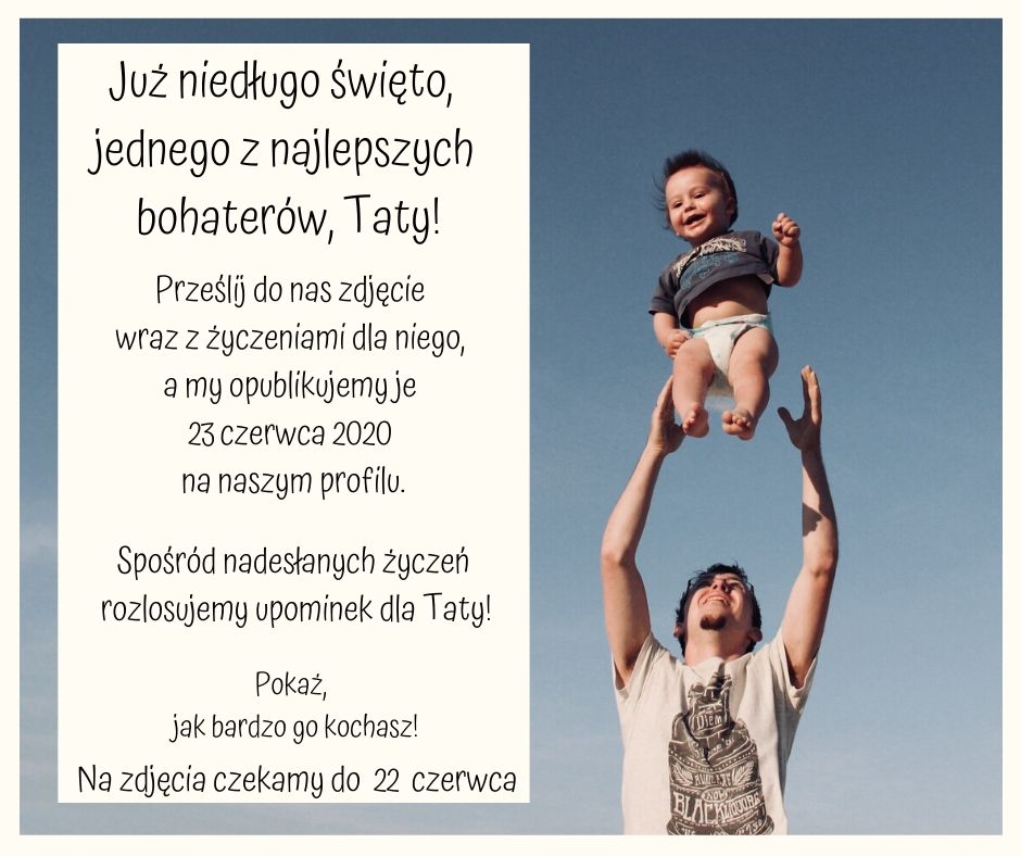 Kochani! Przed nami Dzień Taty. Przyślij do nas zdjęcie wraz z życzeniami dla jednego z ważniejszych bohaterów w naszym życiu- Taty, a my udostępnimy je na naszym profilu 23 czerwca 2020r.
