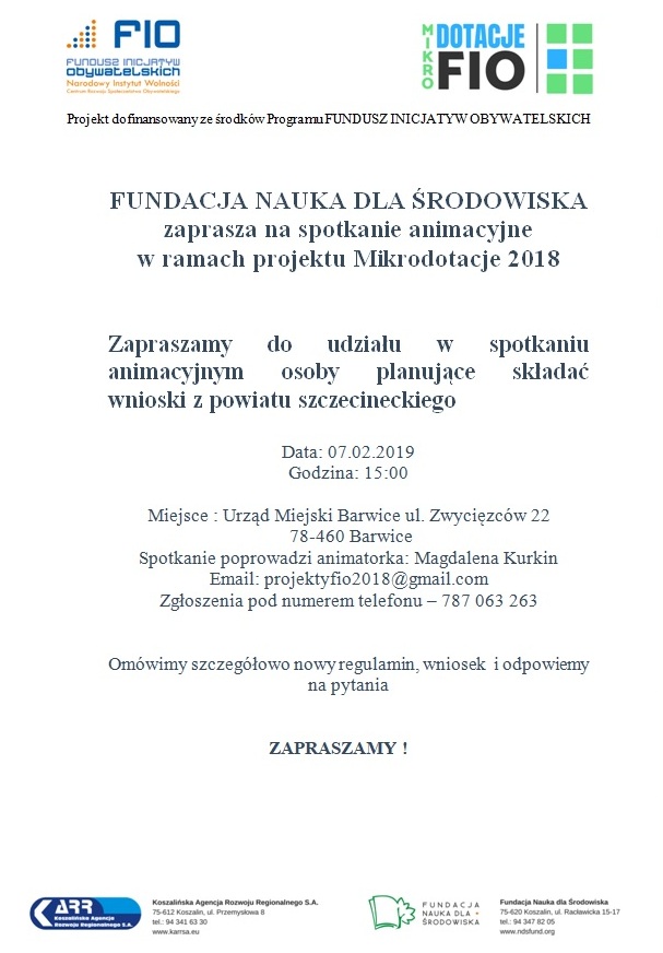Zapraszamy do udziału w spotkaniu animacyjnym, które odbędzie się 7 lutego 2019 r. o godz. 15.00 w Sali posiedzeń Urzędu Miejskiego w Barwicach. Na spotkaniu omówimy szczegółowo nowy regulamin, wniosek i odpowiemy na pytania