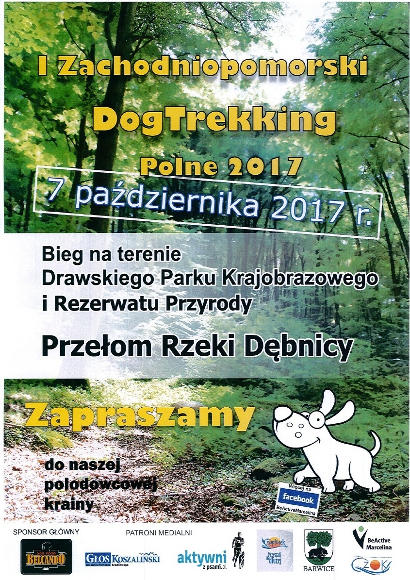 Mamy ogromną przyjemność zaprosić wszystkich miłośników leśnych przebieżek z psem na piękne tereny Pojezierza Drawskiego. Trzy trasy biegu, które zostały wyznaczone, wiodą przez zróżnicowany obszar Drawskiego Parku Krajobrazowego oraz Rezerwatu Przyrody „Przełom Rzeki Dębnicy”. Wydarzenie ma na celu propagować zdrowy i aktywny tryb życia oraz popularyzować fantastyczną formę rekreacji jaką jest dogtrekking.