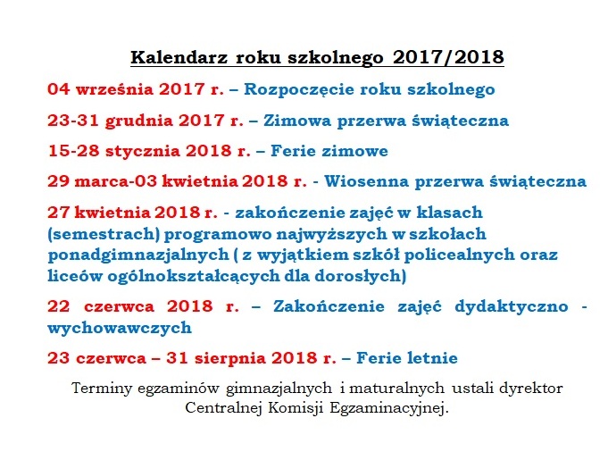 Kalendarz roku szkolnego 2017/2018