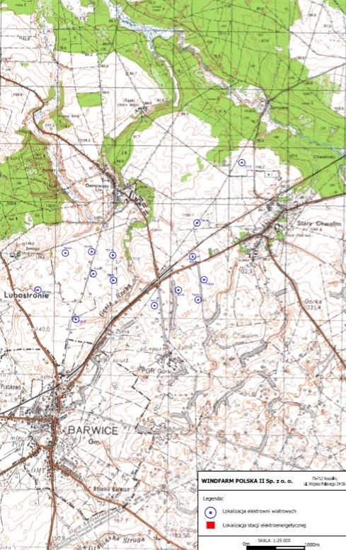 Przypominamy, że na terenie gminy Barwice stanie 14 wiatraków o wysokości 115 m i średnicy śmigieł 113 m. Zlokalizowane będą w północnej części gminy pomiędzy miejscowościami Smuga, Ostrowąsy, Stary Chwalim. Koszt budowy szacowany jest na ok. 41,5 mln zł netto. W skład inwestycji wejdą drogi dojazdowe, sieci energetyczne i teletechniczne (podziemne), GPZ. Inwestorem jest Windfarm Polska II Sp. z o.o. W listopadzie 2018 r. złożona przez inwestora oferta dla Farmy Wiatrowej Barwice wygrała aukcję zwykłą zorganizowaną przez Prezesa Urzędu Regulacji Energetyki. Montaż turbin zaplanowano na wrzesień 2019 – styczeń 2020. Zakończenie budowy – styczeń/luty 2020r.