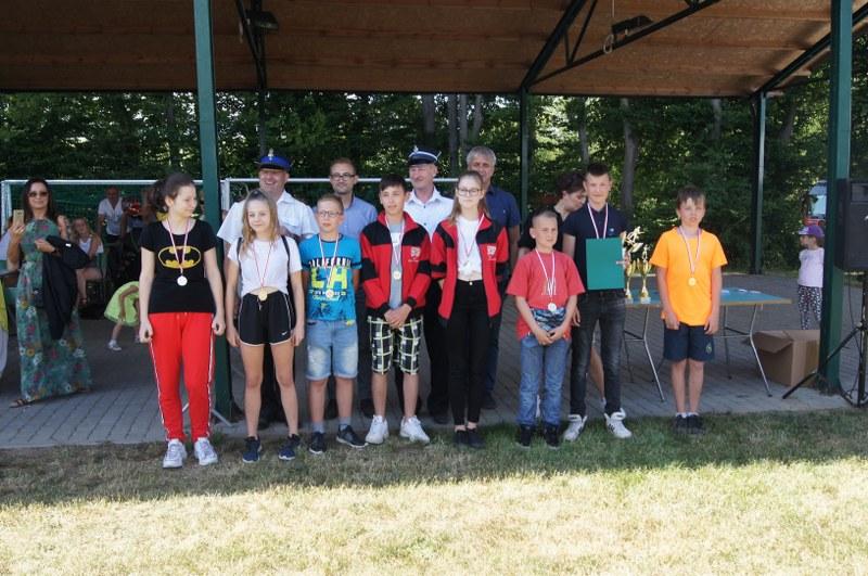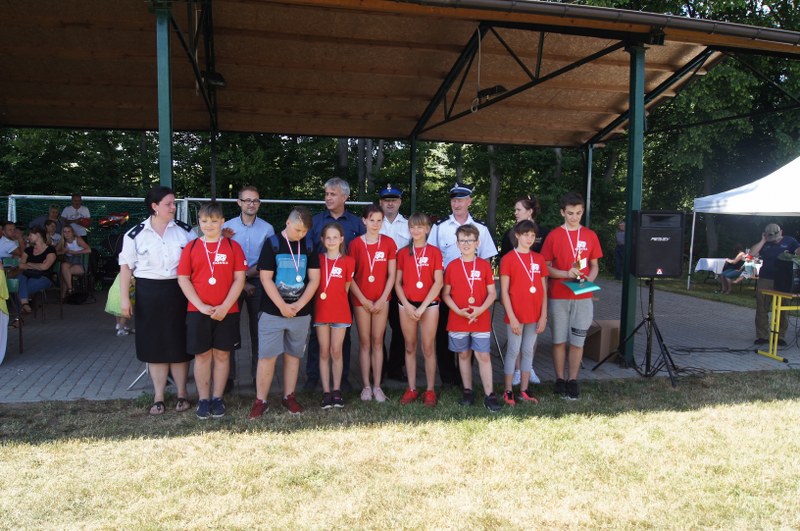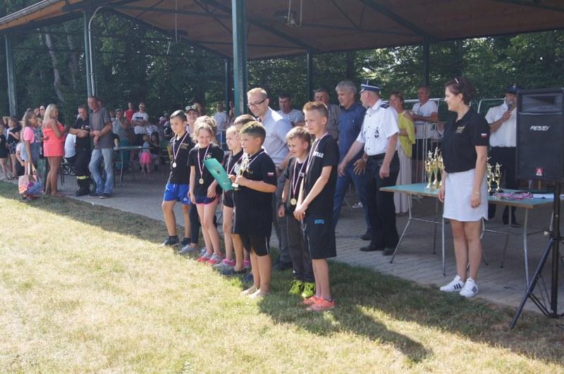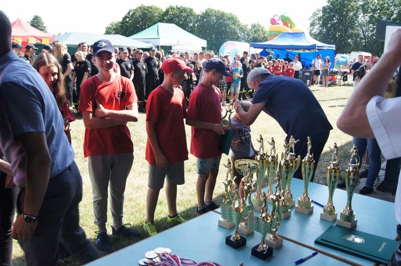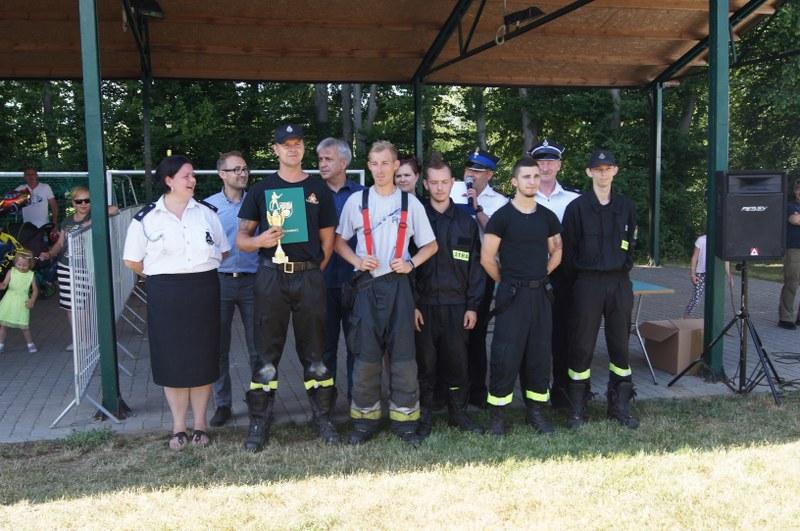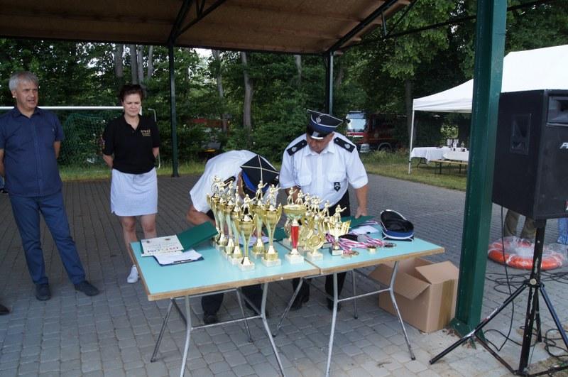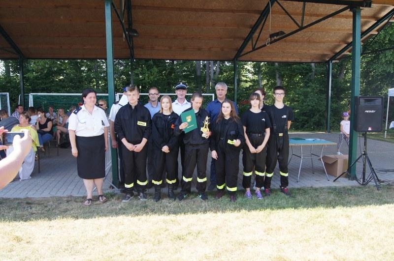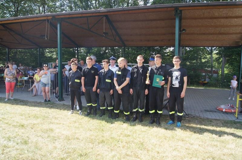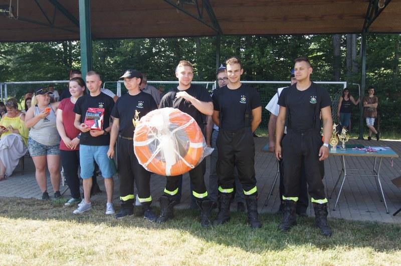 Zwycięskim zespołom pamiątkowe puchary, medale, dyplomy oraz nagrody pieniężne wręczyli: Zastępca Burmistrza Barwic – Robert Zborowski ,Wójt Gminy Grzmiąca – Patryk Makowski oraz Wice wójt Gminy Grzmiąca – Aleksandra Lachowska. Po zawodach odbył się tradycyjny „chrzest” nowych strażaków, w którym udział wzięli także starsi i doświadczeni stażem. Biorąc pod uwagę wysoką temperaturę sobotniego dnia niejedna osoba z pewnością pozazdrościła zimnej kąpieli.