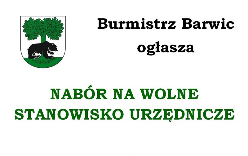 Burmistrz Barwic ogłasza otwarty i konkurencyjny nabór na wolne stanowisko urzędnicze w Urzędzie Miejskim w Barwicach na  Komendanta Straży Miejskiej w Barwicach.