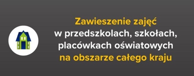 Informujemy, że zgodnie z decyzją Ministra Edukacji Narodowej od 12 do 25 marca br. funkcjonowanie jednostek systemu oświaty zostaje czasowo ograniczone. Oznacza to, że w tym okresie przedszkola, szkoły i placówki oświatowe zarówno publiczne, jak i niepubliczne nie będą prowadziły zajęć dydaktyczno-wychowawczych. To decyzja Ministra Edukacji Narodowej wynikająca z konieczności zapobiegania rozprzestrzenianiu się koronawirusa.