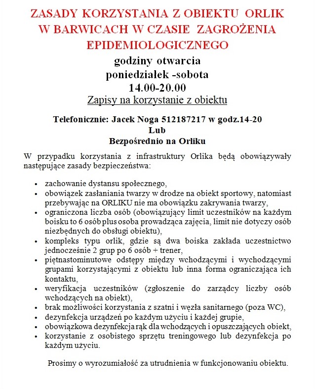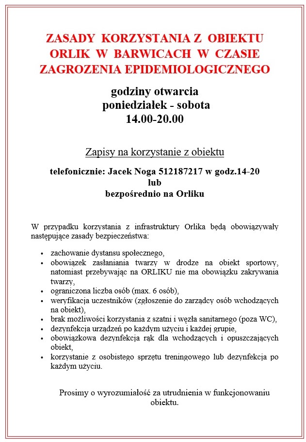 Od 4 maja br. otwarty będzie ORLIK. Prosimy o zapoznanie się z zasadami funkcjonowania obiektu z zachowaniem zasad sanitarnych.