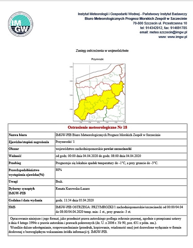 W załączniku przedstawiamy informacje dotyczące spadku temperatury.
