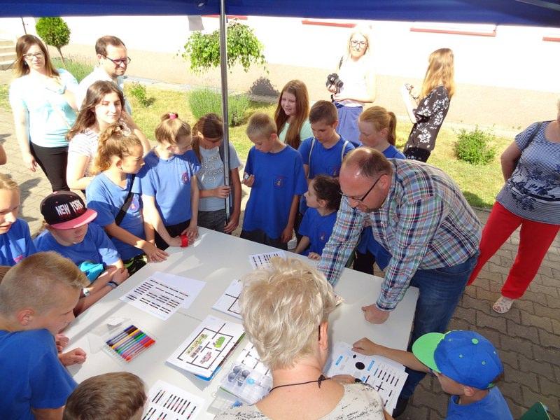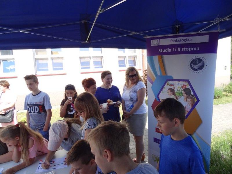 Szczególnie serdecznie p. dyrektor powitała pracowników naukowych z Politechniki Koszalińskiej, którzy pod kierunkiem Dziekana Wydziału Technologii i Edukacji p. dr Agnieszki Hłobił zaprezentowali przyjemną naukę programowania, podczas którego uczniowie mieli okazję zaprzyjaźnić się z ozobotami. Oprócz Politechniki Koszalińskiej na pikniku gościliśmy również „Atomowych Naukowców”, współpracujących z Politechniką Lubelską, którzy zaprezentowali szereg ciekawych doświadczeń fizycznych (z udziałem uczniów). W salach lekcyjnych nauczyciele razem z uczniami przygotowali i przeprowadzili ciekawe zajęcia matematyczno-przyrodnicze i lingwistyczne. Dla najmłodszych nauczyciele wychowania fizycznego przygotowali różnorodne konkurencje sportowe.