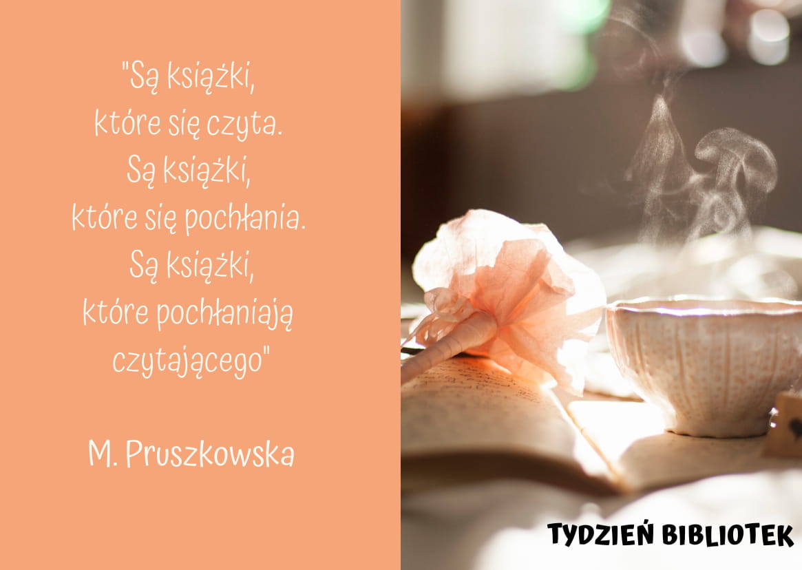 ,,Zasmakuj w Bibliotece.... bo książką warto się delektować, smakujmy słowa, ciągle i wciąż od nowa. Korzystajmy z kelejdoskopu ofert, dla naszych najważniejszych gości- Czytelników, by każdy z nich znalazł w Bibliotece łakomy literacki kąsek. To dla was entuzjastów literatury i kultury jesteśmy"
