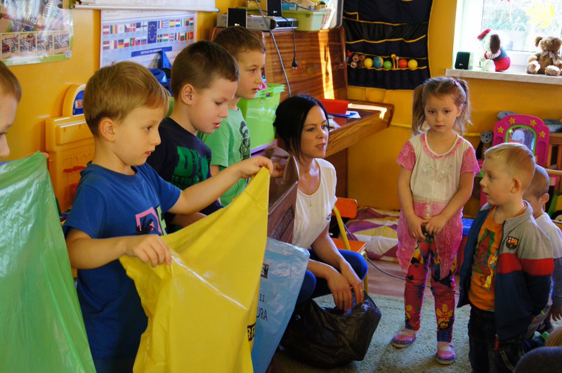 Segregacja, recykling – o tym uczyły się również nasze najmłodsze dzieci. Doskonale wiedzą już w jaki sposób należy dbać o naszą planetę. Zajęcia w Przedszkolu „Bajkowa Kraina” rozpoczęły się krótką bajką, której zadaniem było przybliżenie najmłodszym tematyki jaką jest segregacja odpadów. Dzieci podczas prelekcji ochoczo odpowiadały na pytania zadawane przez przedstawiciela firmy Remondis Sanitech Sp. z o.o. Oddział Barwice – Panią Katarzynę Skoczewską. Dzięki zdobytej wiedzy bez problemu posegregowały odpady do odpowiedniego koloru worka. Na koniec przedszkolaki miały okazję zobaczyć jak w zabawny sposób można powtórnie wykorzystać zbierane w domach śmieci.