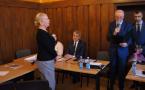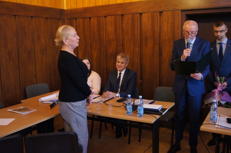 Gościem specjalnym na sesji była Bogumiła Bogdziewicz – Starszy Administrator ŚDS „Słoneczko”, która tego dnia odeszła na emeryturę. Burmistrz Mariusz Kieling oraz Przewodniczący Piotr Małek złożyli na jej ręce kwiaty i podziękowania: