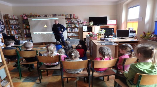 W spotkaniu, które odbyło się 04 marca 2015 roku wzięło udział 20 dzieci i 2 opiekunów ze Szkoły Podstawowej w Starym Chwalimiu. Spotkanie rozpoczęło się o godzinie 11:00 pokazem multimedialnym przygotowanym przez funkcjonariusza Policji. Niespodzianką była prezentacja samochodu policyjnego. Dzieci przygotowały prace na konkurs pt. „Wizerunek policjantki lub policjanta”. Najlepsze zostały wyróżnione i nagrodzone przez przedstawiciela Policji.