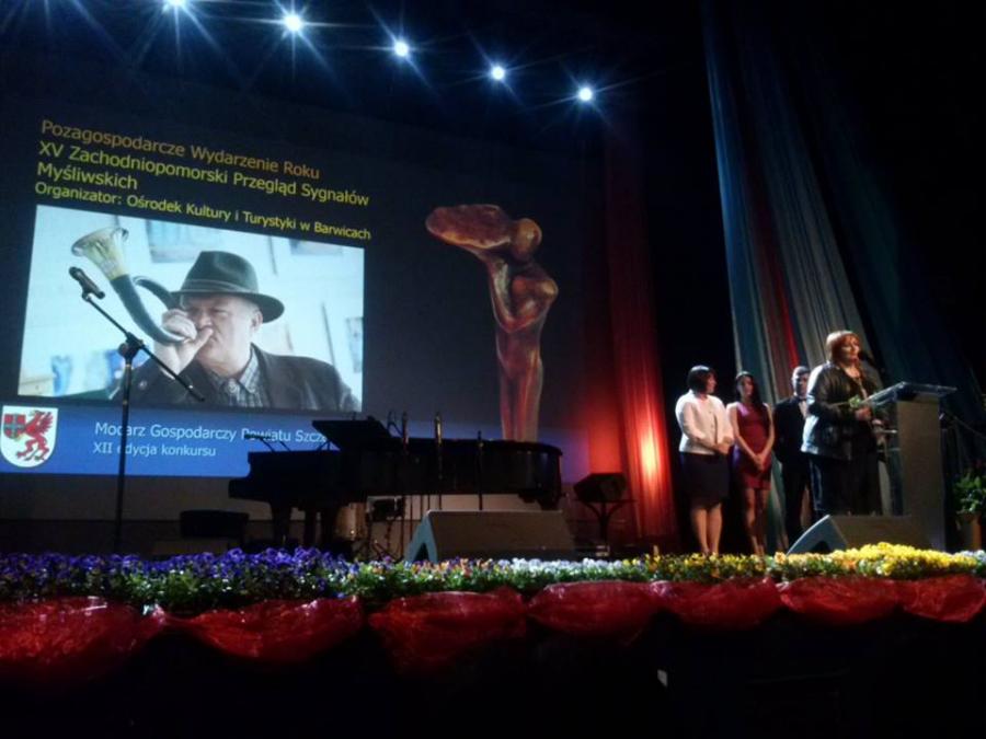 Trzecia statuetka przypadła w udziale Ośrodkowi Kultury i Turystyki w Barwicach za organizację Zachodniopomorskiego Przeglądu Sygnałów Myśliwskich, wygrywając kategorię Pozagospodarcze Wydarzenie Roku. Nagrodę odebrała Dyrektor Dorota Niedziela. Przegląd organizowany jest w Barwicach od 16 lat. Imprezy nikomu nie trzeba przedstawiać, ponieważ na stałe wpisała się w kalendarz barwickich wydarzeń kulturalnych, stając się jego wizytówką. Tradycyjne święto sygnalistów, myśliwych i leśników przyciąga wielu mieszkańców powiatu szczecineckiego. Już dzisiaj zapraszamy na XVI Zachodniopomorski Przegląd Sygnałów Myśliwskich, który odbędzie się po raz pierwszy na Placu Wolności w Barwicach  14 maja 2016 r.