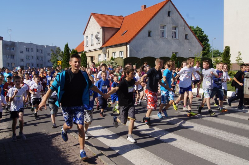 Następnie odbyło się losowanie ok. 100 nagród (koszulki, kubki, smycze, itp.). Każda klasa i szkoła uczestnicząca w biegu otrzyma pamiątkowy dyplom z logo akcji. Serdeczne podziękowania za ufundowanie nagród przez Urząd Miejski w Barwicach i firmę FILOWIAT – sklepy FILO w Barwicach.
