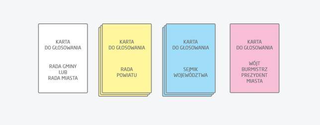 Każdy wyborca otrzyma 4 karty. Każda z nich przyporządkowana będzie konkretniej grupie kandydatów, w zależności od urzędu, do którego pretendują i będzie wyróżniała się odpowiednim kolorem: