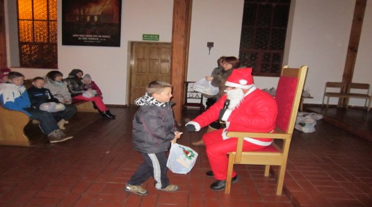 Rodzice wraz z dziećmi najpierw uczestniczyli we mszy św. a następnie gość z Laponii rozdał prezenty.