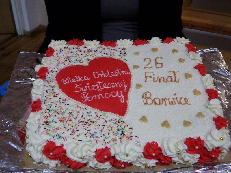 Kochani, podarowaliście Fundacji Wielkiej Orkiestry Świątecznej Pomocy 14.747,43 złote , 70 euro oraz 3 kg innej waluty. Pieniądze dokładnie przeliczone i wpłacone. Teraz trzeba zrobić rozlicznie. Podczas 26 Finału WOŚP w Barwicach na ulicach miasta i gminy kwestowali wolontariusze ze Szkoły Podstawowej w Barwicach, ze Szkoły Podstawowej w Starym Chwalimiu, z Zespołu Szkół w Barwicach, z Ochotniczej Straży Pożarnej w Barwicach i Ośrodka Kultury i Turystyki. Podczas części finałowej w sali miejskiej zaprezentowała się grupa taneczna OKITKI, zespoły wokalne PineSki i "Takie nie inne " oraz chór "Chwytaj dzień". Były licytacje, loteria, malowanie buziek (dziękujemy SIM), kawiarenka z pysznymi ciastami (dziękujemy Świetlica Gonne Małe i GS Barwice) i był smakowity tort przygotowany przez Panią Małgorzatę Mikiel. Tort został wylicytowany a licytujący Pan Jarosław Omelańczuk podzielił się ze wszystkimi. Namalowaliśmy WOŚP-owy obraz, robiliśmy latawce, bawiliśmy się na zameczku z kulkami.