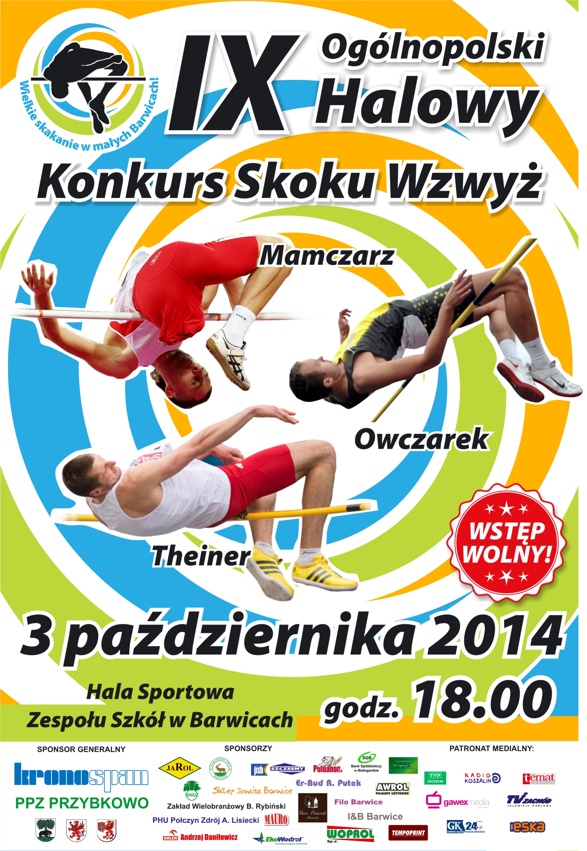 Tegoroczny konkurs skoku wzwyż w Barwicach będzie bardzo atrakcyjny i emocjonujący. Udział w jednym miejscu i czasie tak dużej liczby wybitnych skoczków nie zdarza się często. Z całą pewnością zaproszeni skoczkowie pokażą wielkie sportowe widowisko, które warto zobaczyć. Konkurs odbędzie się 3 października 2014 r. w hali sportowej Zespołu Szkół o godz. 18,00 - wstęp wolny. Od godz. 14.30 odbędzie się konkurs dla dzieci i młodzieży z województwa zachodniopomorskiego.