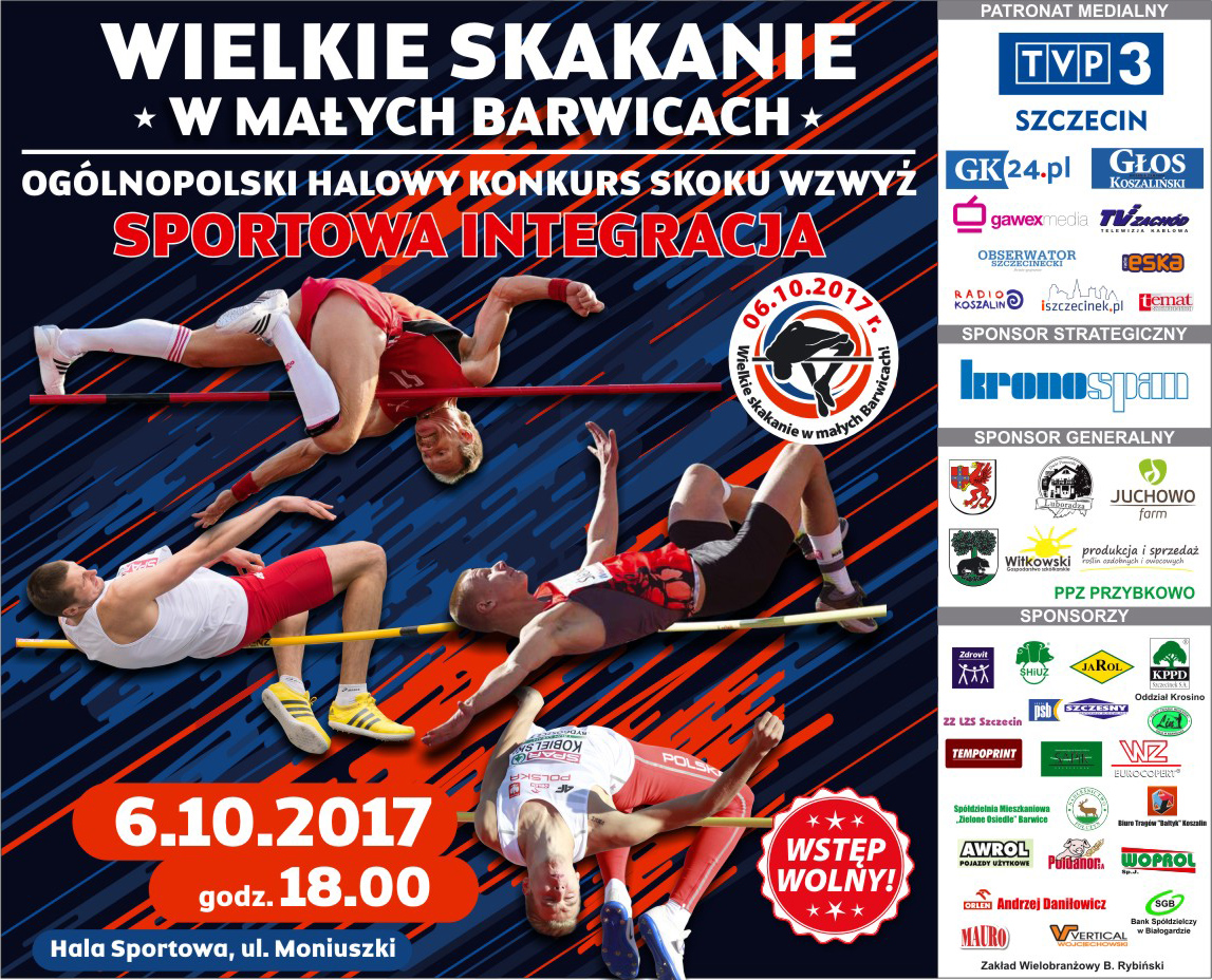 06 października 2017 r. odbędzie się XII Ogólnopolski Halowy Konkurs Skoku Wzwyż pod patronatem Starosty Powiatu Szczecineckiego. To konkurs mający swoją markę i renomę, uważany przez samych skoczków wzwyż najlepszym halowym konkursem w Polsce. Tak jak w latach poprzednich hasło konkursu to „Wielkie skakanie w małych Barwicach”, które tak określiła barwicki konkurs TVP Szczecin. Barwickie skoki mają charakter konkursu integracyjno – pokazowego. To z całą pewnością jedyny halowy konkurs skoku wzwyż w kraju, w którym będzie można podziwiać rywalizację najlepszych skoczków pełnosprawnych ze skoczkami niepełnosprawnymi.Wśród zaproszonych skoczków w Barwicach zobaczymy wielu tegorocznych medalistówMistrzostw Polski, Europy oraz finalistów Mistrzostw Świata. W gronie skoczków nie zabraknie medalistów  Igrzysk Paraolimpijskich – Londyn 2012 i Rio 2016MaciejaLepiaty oraz Łukasza Mamczarz. Ze skoczków pełnosprawnych po raz kolejny zobaczymy Wojciecha Theinera (olimpijczyka z Rio 2016) oraz  Piotra Ślebodę, dotychczasowego rekordzisty barwickiego konkursu. Na skoczni w Barwicach swoje umiejętności zaprezentują młodsi skoczkowie w kategorii młodzieżowcy oraz junior min.: Aleksandra Nowakowska, Norbert Kobielski, Maciej Grynienko, Mateusz Tofil, Piotr Sztandur. To skoczkowie, którzy reprezentowali nasz kraj na tegorocznych Mistrzostwach Świata i Europy. W Barwicach nie zabraknie najlepszego polskiego weterana skoku wzwyż, 63 – letniego Dariusza Bednarskiego, wielokrotnego medalisty Mistrzostw Świata i Europy.Dotychczasowy rekord barwickiego konkursu w kategorii mężczyzn wynosi 220 cm, a w kategorii kobiet rekordzistką jest Aneta Rydz 178 cm. Tak jak podczas poprzednich konkursach skoku wzwyż każdy z widzów będzie miał możliwość wykonania pamiątkowego zdjęcia z mega skoczkami oraz dotknięcia, obejrzenia medalu olimpijskiego, mistrzostw Świata czy Europy.  Konkurs odbywa się przy wsparciu finansowym wielu instytucji oraz sponsorów. Sponsorem strategicznym tegorocznego konkursu jest KRONOSPAN Szczecinek oraz samorządy gminy Barwice i Starostwa Powiatowego w Szczecinku. Konkurs odbędzie się 06 października 2017 r. w hali sportowej Zespołu Szkół o godz. 18,00.  Wstęp wolny.