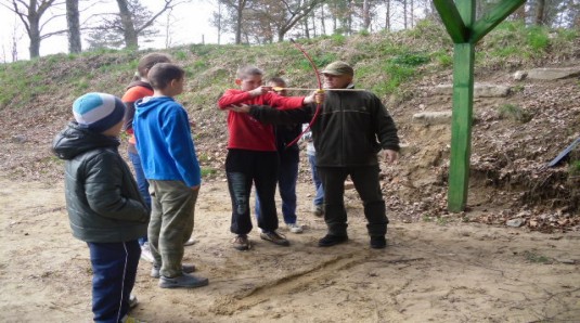 Atrakcją spotkania było strzelanie z łuku i wiatrówki, pod czujnym okiem pana Andrzeja Zielonego, który cierpliwie objaśniał jak należy celować, aby trafić w "10".