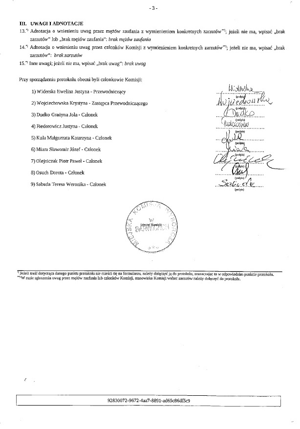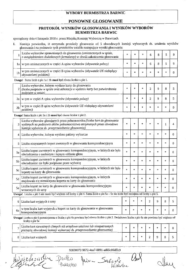 W załaczeniu protokoły Miejskiej Komisji Wyborczej