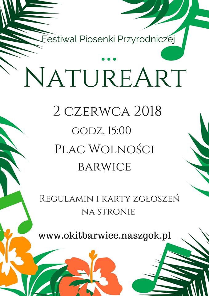 15.00 – Festiwal Piosenki Przyrodniczej „NatureArt” – występy dzieci - przedszkole, szkoła podstawowej, świetlice wiejskie oraz zespoły Ośrodka Kultury-