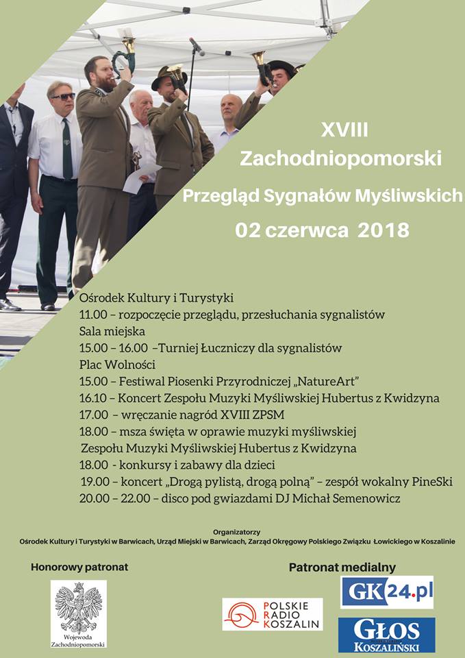 2 czerwca 2018 już po raz osiemnasty odbędzie Zachodniopomorski Przegląd Sygnałów Myśliwskich o statuetkę Niedźwiedzia Barwickiego. Patronat Honorowy nad wydarzeniem objął Wojewoda Zachodniopomorski Pan Tomasz Hinca. Patronat medialny natomiast Radio Koszalin, Głos Koszaliński i portal GK24.