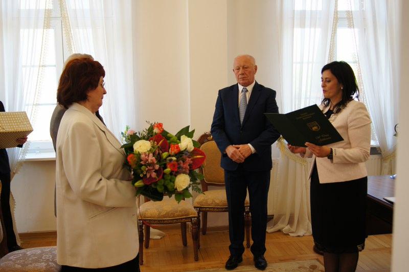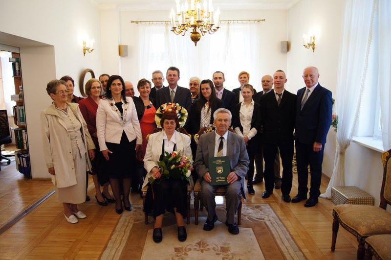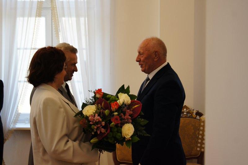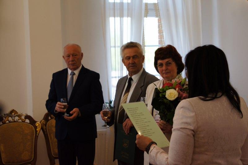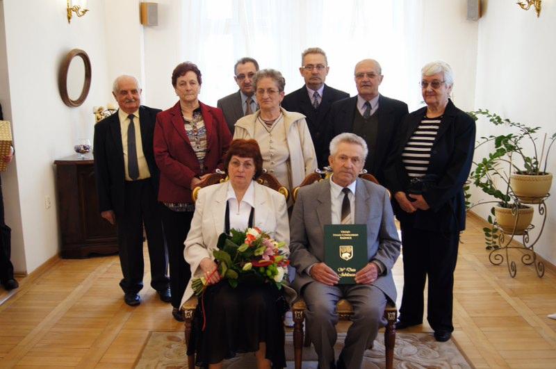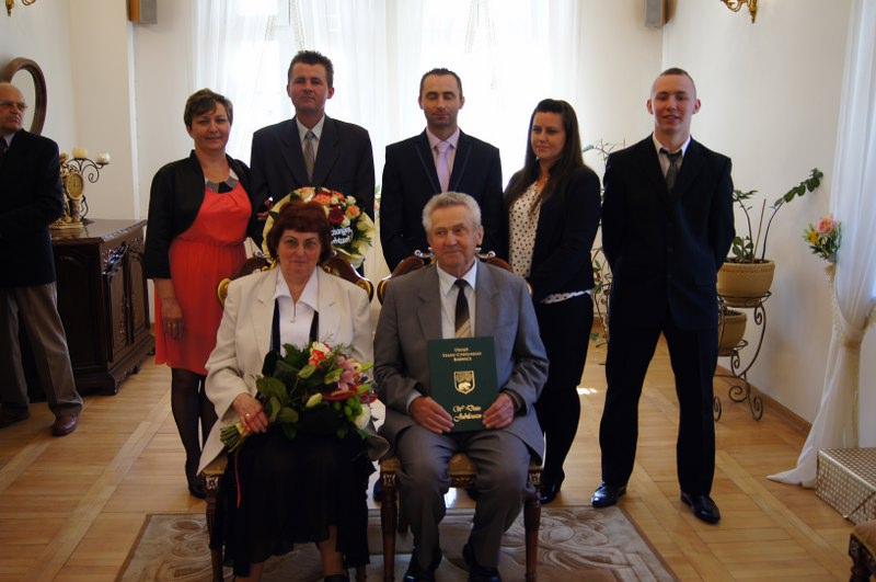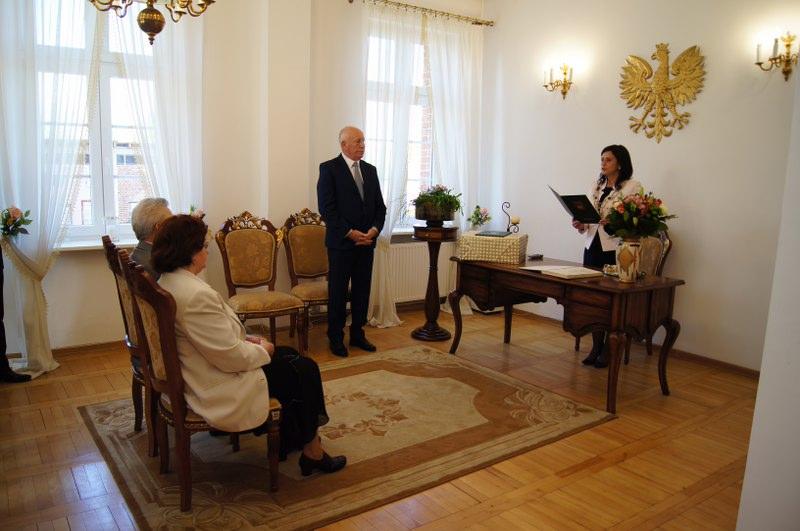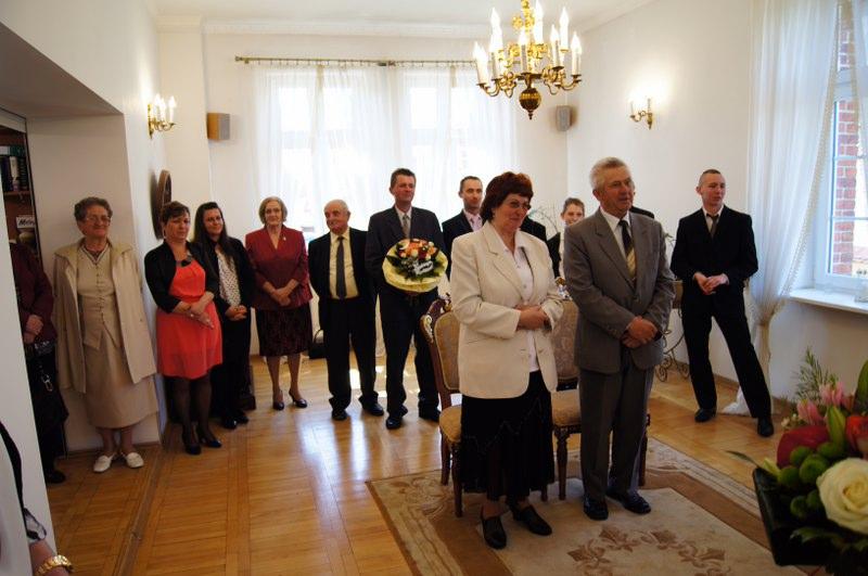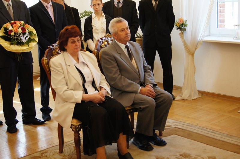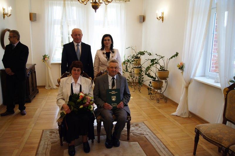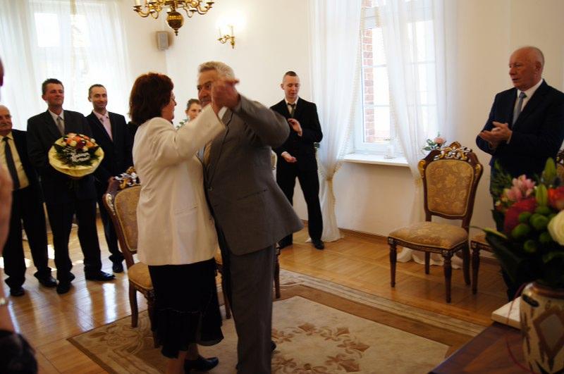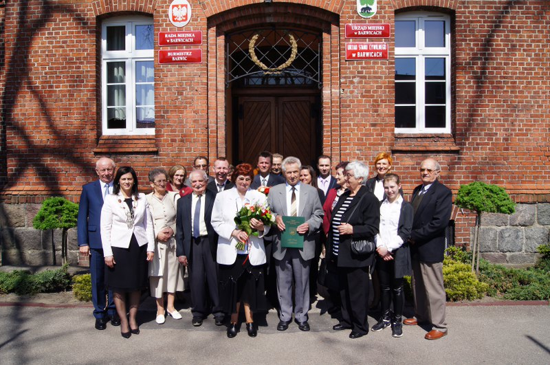 W Urzędzie Stanu Cywilnego w Barwicach weekend majowy rozpoczął się dźwiękami Marsza Mendelsona. 29 kwietnia w niedzielę słynny Marsz był wspomnieniem dnia ślubu i ceremonii, która miała miejsce 50 lat temu. Dnia, który świętowali Maria i Wiesław Gołuccy w towarzystwie najbliższej rodziny i znajomych. "Warto było przeżyć razem pół wieku - potwierdzają nasi Jubilaci- warto dla nas samych, warto dla dwóch synów, synowej, narzeczonej syna i wnuka Juliana, warto dla dzisiejszego dnia". Z wielką klasą, radością i szczerością Jubilaci dzielili się z nami swoimi przeżyciami. Sobie wzajemnie podziękowali za wspólne lata, za to, że właśnie było "warto". Po pięknych słowach podziękowania małżonkowie usłyszeli utwór - dedykację "Niebo z moich stron" Czerwonych Gitar. Zachęceni przez kierownika usc z wielką lekkością zatańczyli swój Jubileuszowy pierwszy taniec. Życzenia i gratulacje Jubilatom złożył Zenon Maksalon Burmistrz Barwic.