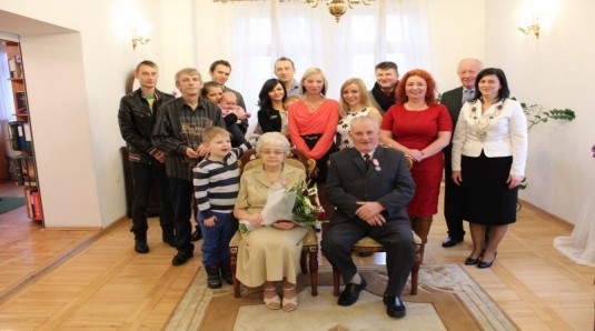 Jubilatom Burmistrz Barwic wręczył odznaczenie państwowe - medale „za długoletnie pożycie małżeńskie”, które są dowodem o prawdzie i wzorze małżeństwa dla innych.