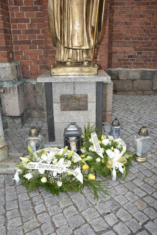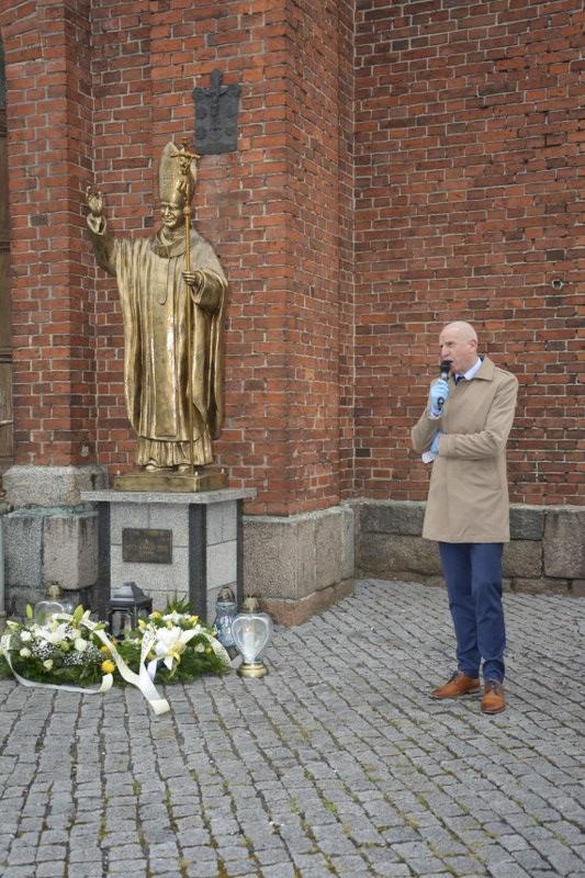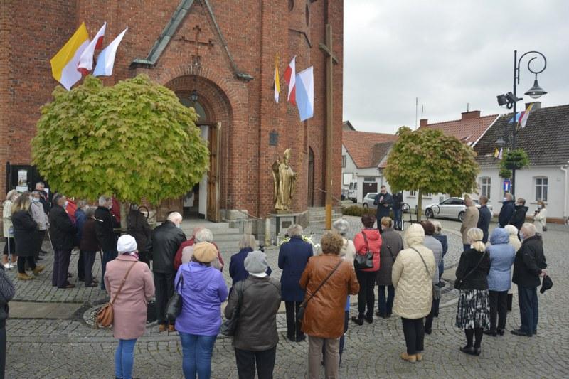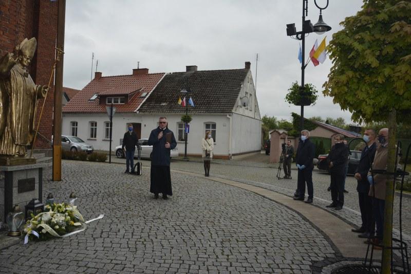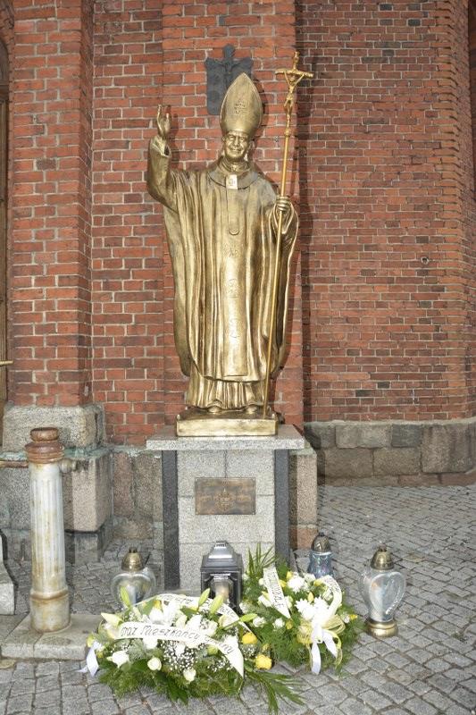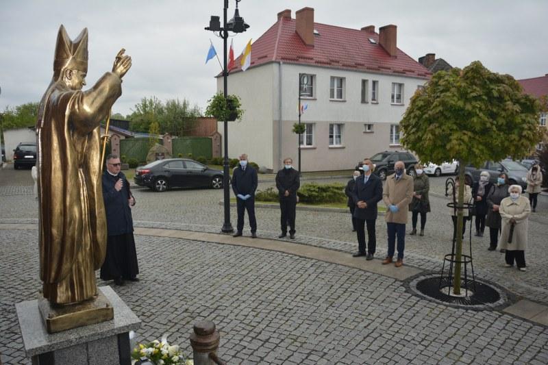Dziś mija 100 rocznica urodzin św. Jana Pawła II. Mimo, iż trwająca pandemia pokrzyżowała plany obchodów, nie zrezygnowano całkowicie ze świętowania tego niezwykłego 100–lecia. W dniu dzisiejszym odbyła się uroczysta msza święta z udziałem barwickich samorządowców oraz mieszkańców. Aby podkreślić ten ważny jubileusz Burmistrz Barwic Mariusz Kieling wraz z Przewodniczącym Rady Miejskiej Piotrem Małkiem złożyli pod pomnikiem św. Jana Pawła II kwiaty w kolorach papieskich. Burmistrz Barwic zadeklarował, że w najbliższym czasie na murach kościoła pojawi się tablica, upamiętniająca to wydarzenie. Kolejnym przejawem pamięci o Jana Pawła II w przestrzeni publicznej naszej Gminy, jest udekorowanie miasta. W tym roku flagi zawisły wzdłuż ulicy Jana Pawła II oraz tradycyjnie w centrum.