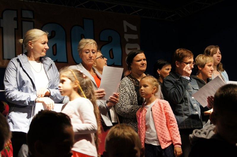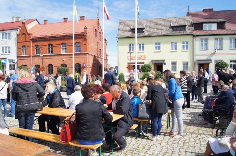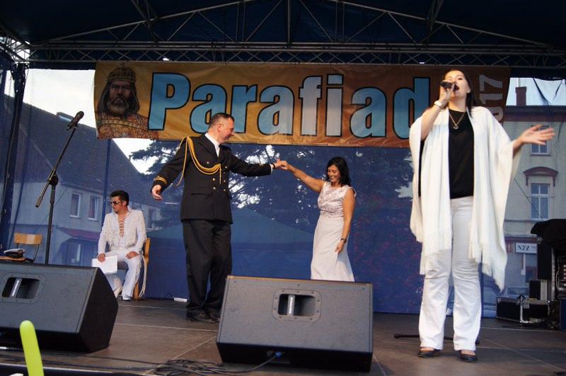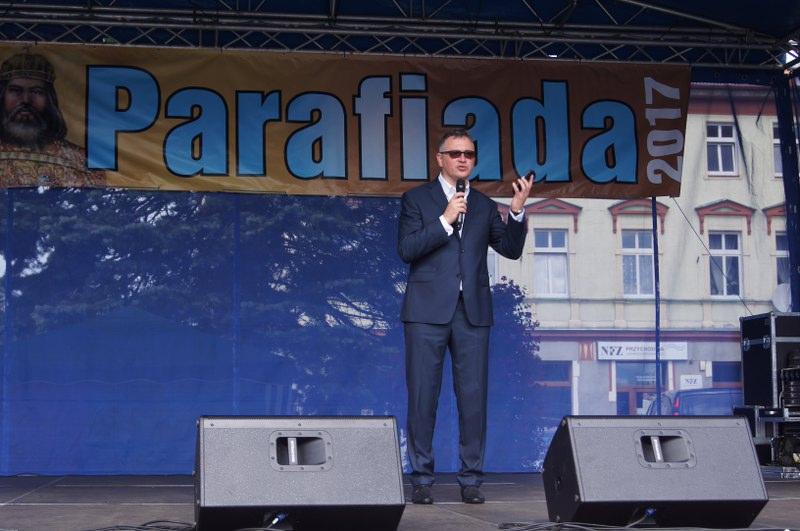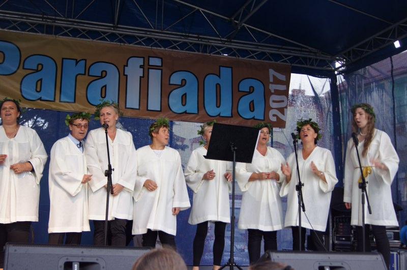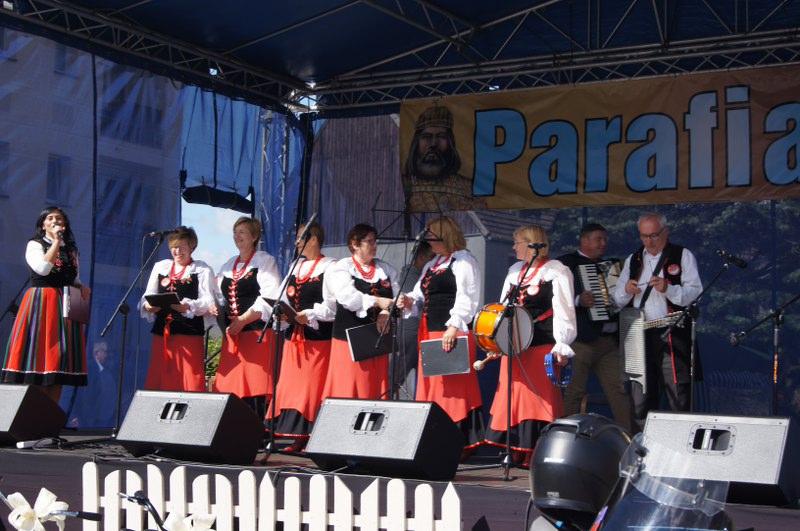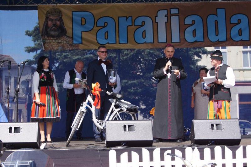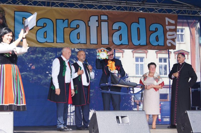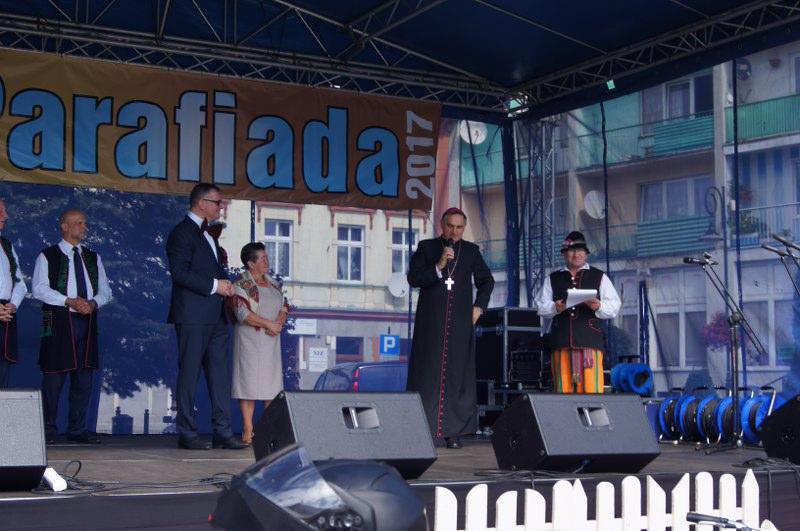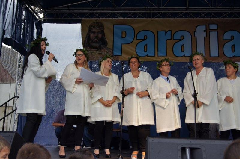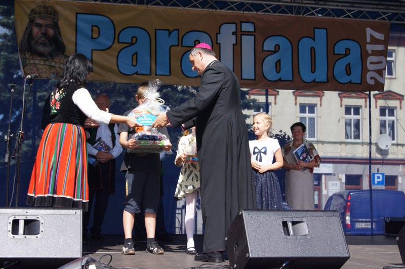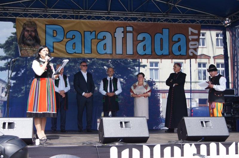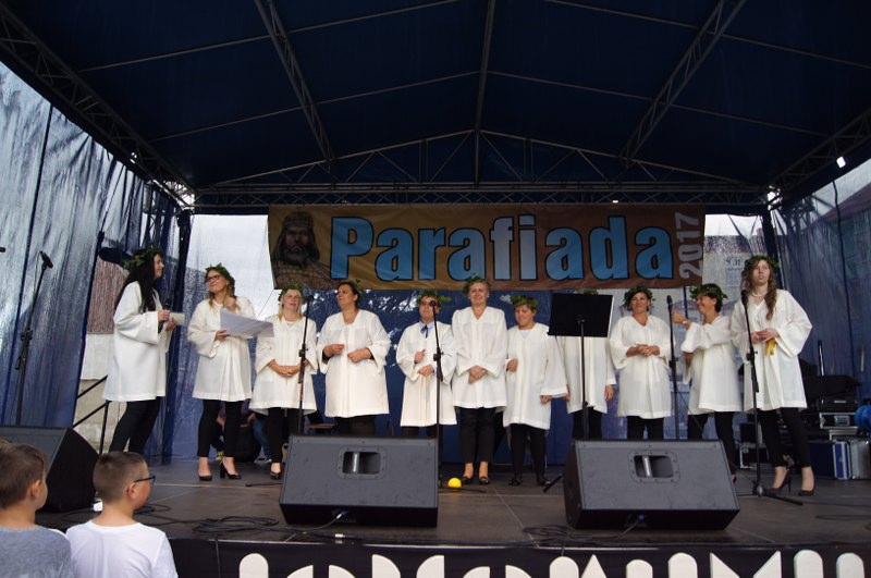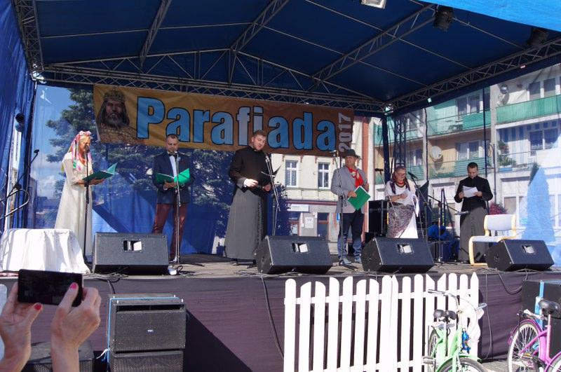Następnie na Placu Wolności rozpoczęła się Parafiada, czyli czas radosnego świętowania parafian i gości. Wszystko rozpoczęło się od inscenizacji przygotowania ks. proboszcza Tomasza Jaskółki do przyjęcia I Komunii Świętej (w nawiązaniu do ubiegłorocznej inscenizacji przyjęcia chrztu). Przedstawienie to nawiązywało do tegorocznego hasła roku św. brata Alberta: "Być dobrym, jak chleb". Następnie Biskup, Proboszcz oraz Burmistrz i Starosta dzielili się chlebem z obecnymi na placu mieszkańcami.
