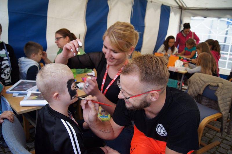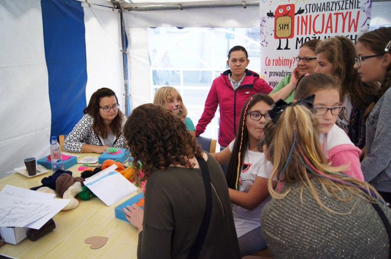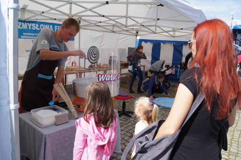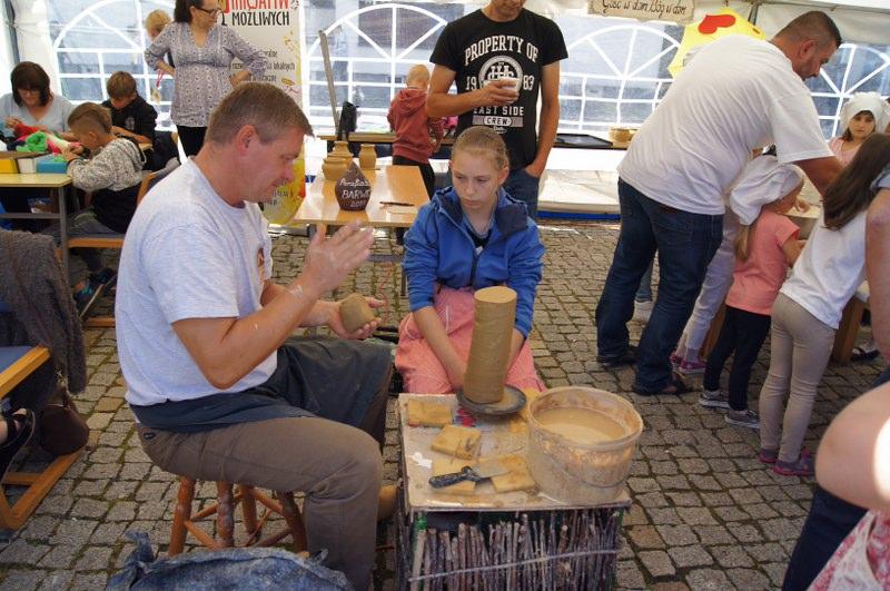 W czasie występów muzycznych działo się również wiele na rozmaitych stoiskach. Pod okiem fachowcy - p. Krzysztofa Plucińskiego dzieci - ubrane typowe nakrycia głowy - mogły samodzielnie przygotować bułeczki. Obok można było przeprowadzić proste eksperymenty fizyczne czy spróbować ulepić gliniany dzbanek. Przygotowany był również dmuchany zamek, miasteczko ruchu drogowego. Można było zobaczyć pojazdy policji, straży pożarnej czy motocykle. W międzyczasie dużo radości wywołały występy grupy "Mimezis Art": klaun, nauka chodzenia na szczudłach czy pokaz świetlny.
