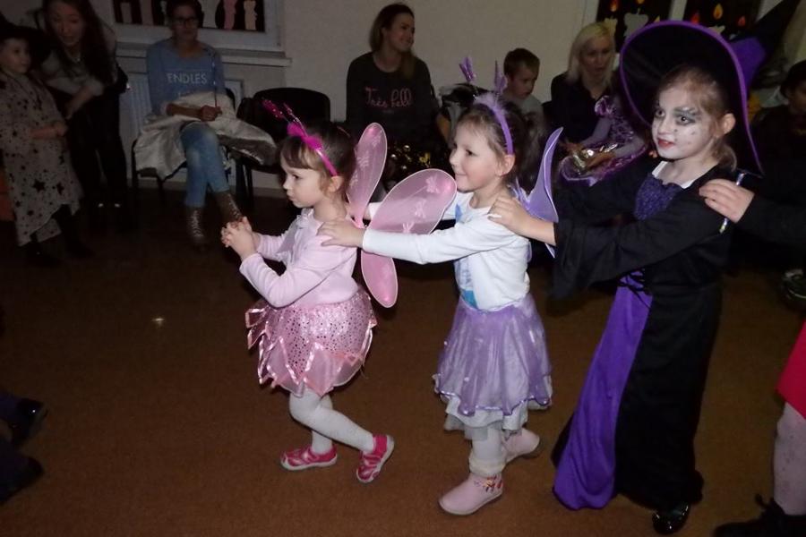 Spotkanie rozpoczęło się wspólnym tańcem, a następnie dzieci otworzyły kufer pełen wróżb, na bliższą i dalszą przyszłość. Przekłuwane serca ukazały imiona przyszłych sympatii, toczące się koło fortuny przepowiedziało im los, a losowane rekwizyty określiły przyszły zawód. Oprócz wróżb dużym zainteresowaniem cieszyły się konkursy z nagrodami i słodki poczęstunek. Na koniec zabawy nagrodzone zostały dwa najciekawsze stroje.