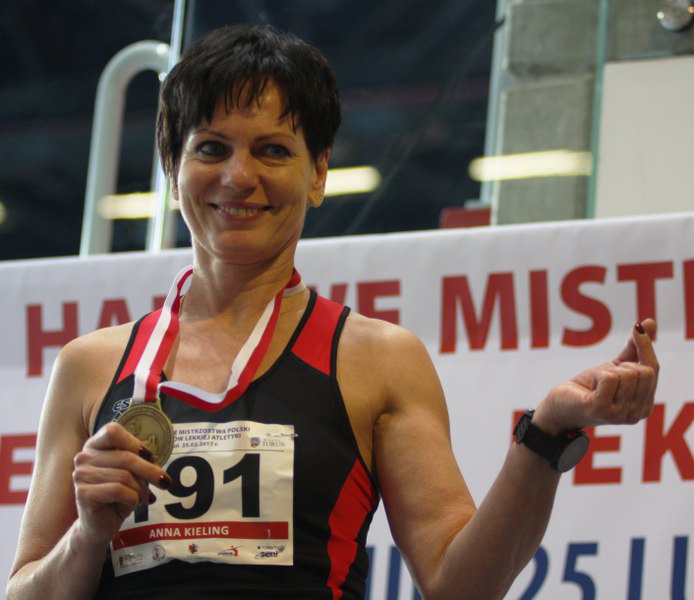 Anna Kieling jest nie tylko trenerką młodych lekkoatletów GULKS Barwice. Swój życiowy sukces jako zawodniczka odniosła na Halowych Mistrzostwach Polski Weteranów w Lekkiej Atletyce, które odbyły się 25.02.2017 r. w Toruniu. Pani Ania została mistrzynią Polski w biegu na 60 m. przez płotki w kategorii kobiet K-50. Ten wielki sportowy sukces jest przykładem na to, że w życiu nie ma barier wiekowych. A swoje sportowe marzenia i pasje można realizować w każdym wieku.