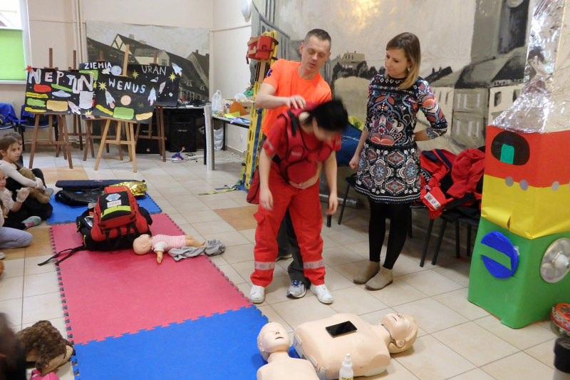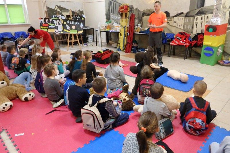 Oprócz zajęć techniczno-plastycznych mieliśmy również spotkanie z Ochotniczą Grupą Ratunkową TADMED ze Szczecinka. Dzieci przekonały sie, że "pierwsza pomoc to nie kosmos". Zorganizowaliśmy także ognisko na terenie Hubertówki Koła Łowieckiego "Sokół". Udaliśmy się tam " kosmicznym pojazdem", co sprawiło wszystkim ogromną radość. Następnie już zwyczajnym autobusem pojechaliśmy do kina na przezabawną bajkę " Sing".
