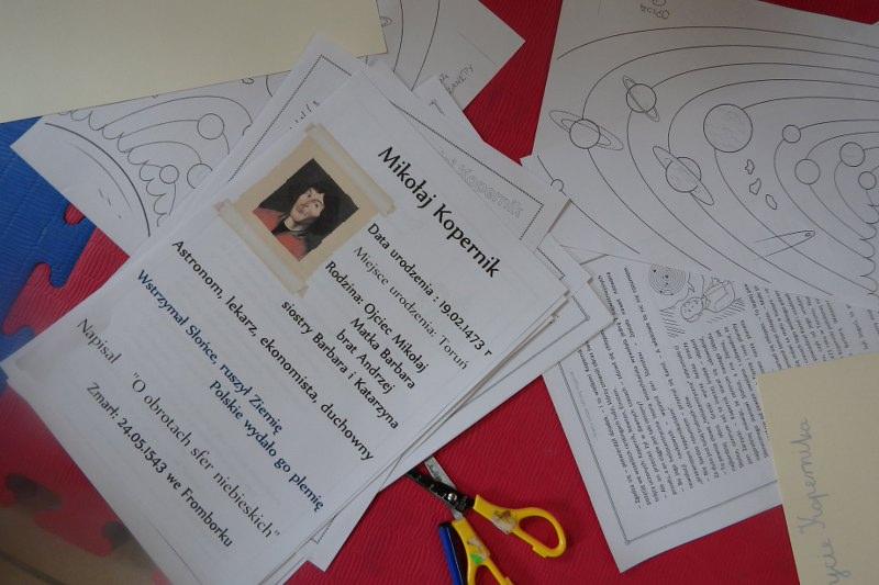 Jedne z zajęć poświęciliśmy na przybliżenie dzieciom postaci Mikołaja Kopernika. W tym celu Pani Ewa Nowosielska odczytała krótkie opowiadanie, po którym dzieci odpowiedziały na zadawane pytania.