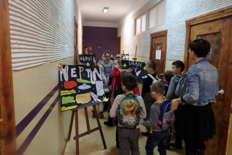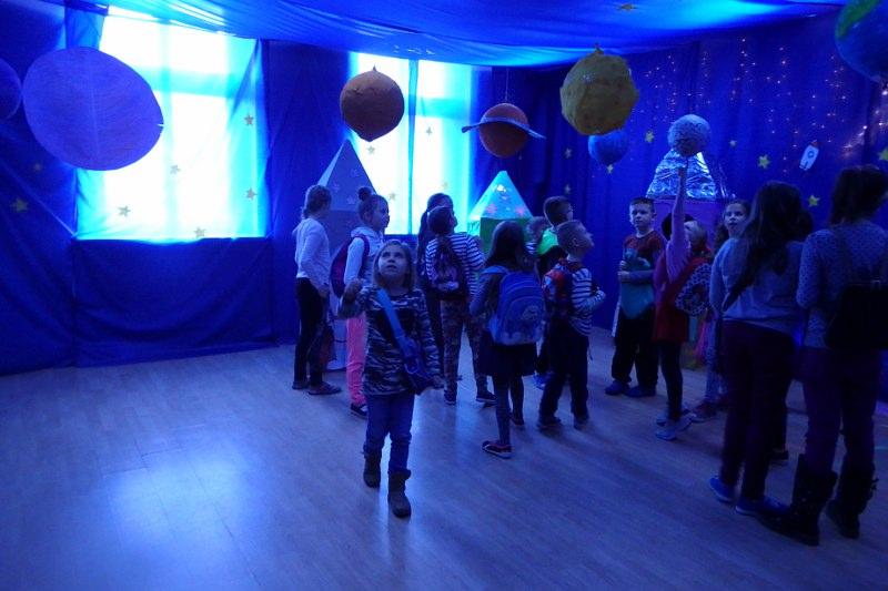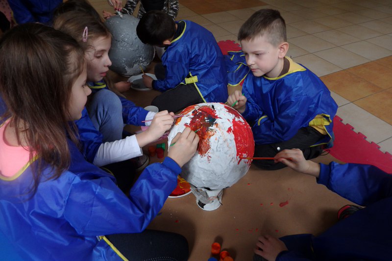 Tegoroczne ferie odbyły się  pod hasłem " W kosmicznym świecie". Uczestniczyło w nich 29 dzieci w wieku od 6 do 12 lat. W trakcie zajęć zapoznawaliśmy się z naszym układem słonecznym, zarówno poprzez ciekawe lektury, filmy jak i własne projekty przestrzenne. Wspólnymi siłami stworzyliśmy planety, rakiety kosmiczne, które następnie umieściliśmy w specjalnie przygotowanym pomieszczeniu. Efekt okazał się imponujący.