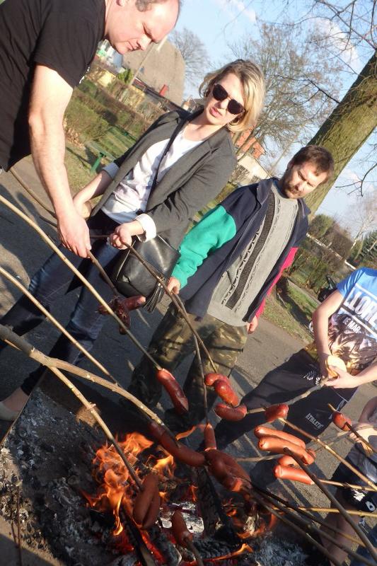 Nasza barwicka Marzanna została przepięknie ozdobiona kwiatuszkami. Żal było ją spalić, dlatego mięliśmy przygotowana drugą- ekologiczną Panią Zimę. Z taką papierową wersją Marzanny przeszliśmy ulicami Barwic do Parku Miejskiego. Wraz z Ochotniczą Strażą Pożarna spaliliśmy symbol odchodzącej zimy i juz oficjalnie w Barwicach zapanowała wiosna!!!  Uczciliśmy to wspólnym pieczeniem kiełbasek.