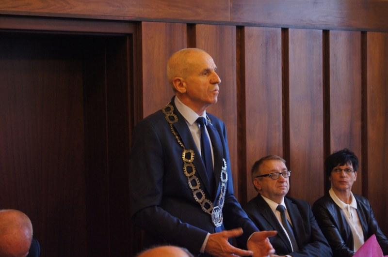 Podczas swojego pierwszego przemówienia nowo wybrany Burmistrz pogratulował radnym, którzy otrzymali mandaty. Podziękował ustępującemu Burmistrzowi Zenonowi Maksalonowi. Mariusz Kieling podkreślał potrzebę zmiany i wprowadzenia nowej jakości – na ten fakt wielokrotnie zwracali mu uwagę mieszkańcy, podczas przedwyborczych spotkań. Nowy Burmistrz widzi potrzebę współdziałania z samorządem powiatowym, zapowiedział spotkanie z szefami wszystkich jednostek podległych oraz przedstawicielami biznesu celem zapoznania się z sytuacją gminy oraz wprowadzeniem ewentualnych korekt do przyszłorocznego budżetu.