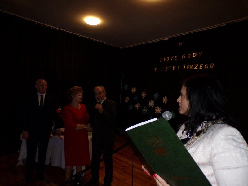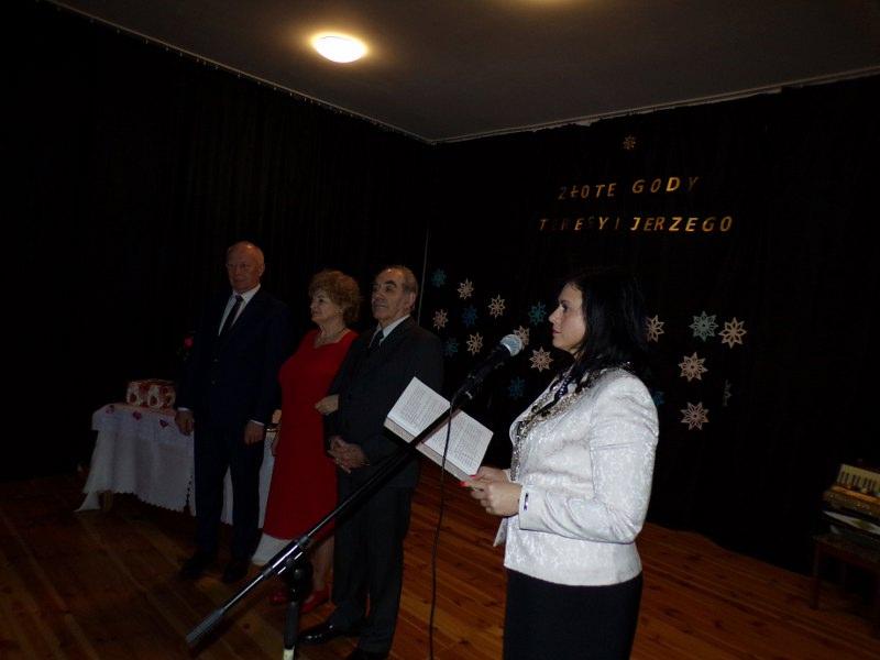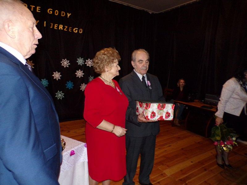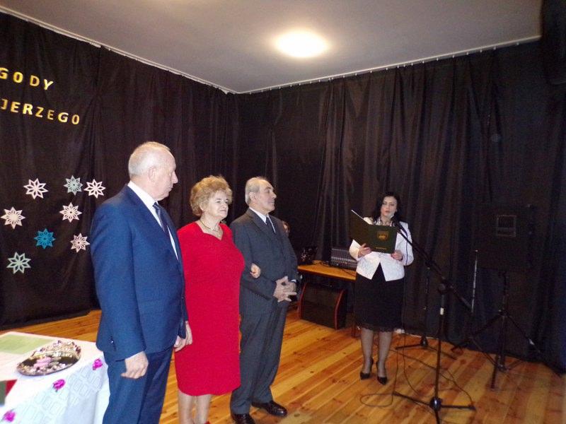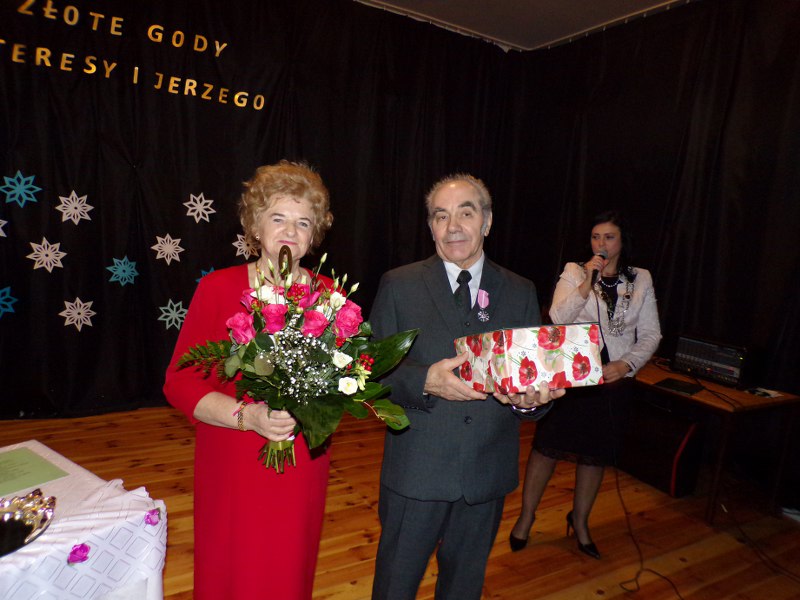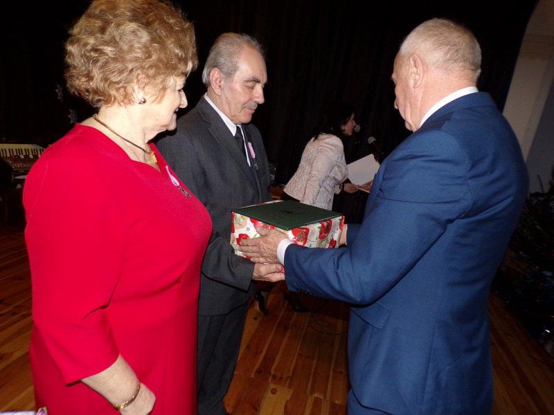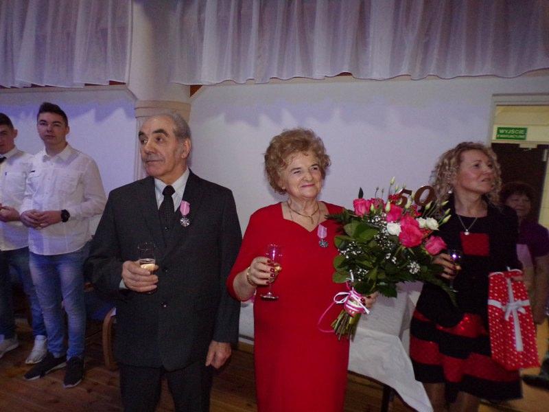25 grudnia 2017 roku na Sali Miejskiej w Barwicach odbył się Jubileusz 50-lecia pożycia małżeńskiego Państwa Teresy i Jerzego Ołubek. Można powiedzieć, że historia zatoczyła koło, bo to właśnie na tej sali Pani Teresa i Pan Jerzy spotkali się ponad 50 lat temu na zabawie tanecznej i tak zaczęła się ich wielka miłość. Muzyka i taniec już na zawsze towarzyszyły im w ich wspólnej drodze życia. Nie tylko lubią , ale też są uzdolnieni muzycznie. Pan Jerzy zagra na każdym instrumencie a Pani Teresa śpiewa w chórze emerytów i rencistów i do dziś widujemy ich na barwickich scenach. Zaczęli swoje życie tańcem, który wciąż trwa. Jest radosny, czasami nostalgiczny, czasami szybki, a czasami o wolnym tempie, bo przecież takie jest życie. Najważniejsze, że w każdym kroku, chwili życia byli i są razem. Z radością i smutkiem, ze śmiechem i rozpaczą, w zdrowiu i w chwilach gdy go brakowało. Jednak, jak mówią córki, w życiu ich Rodziców było i jest najpiękniejsze to, jak zawsze razem troszczą się o siebie i szanują wzajemnie. Jubilaci zostali odznaczeni specjalnymi medalami „Za długoletnie pożycie małżeńskie” przyznanymi przez Andrzeja Dude Prezydenta RP. To wyróżnienie i wzór małżeństwa dla innych. To dowód, że można wspólnie pokonać wszelkie trudności i iść razem przez życie z radością w sercu. Jubilaci uroczyście podziękowali sobie wzajemnie za okazaną miłość, przywiązanie i opiekę. Przyrzekali, że uczynią wszystko, aby ich małżeństwo było nadal szczęśliwe. W uroczystości udział wziął Pan Zenon Maksalon Burmistrz Barwic oraz Pani Renata Trembowelska Kierownik Urzędu Stanu Cywilnego. Nie zabrakło również członków rodziny, przyjaciół i znajomych, którzy wznieśli toast za pomyślność i zdrowie Jubilatów oraz odśpiewali gromko „Sto lat”.