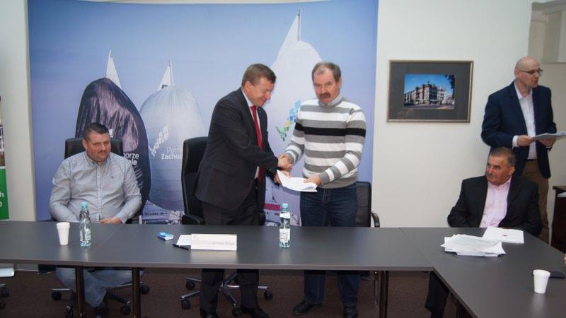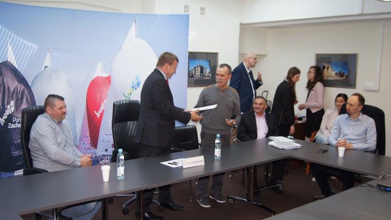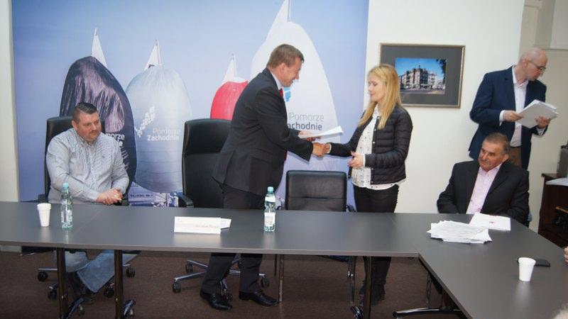 W dniu 11 maja 2017 roku, w Szczecinie w Sali narad Zarządu Województwa Zachodniopomorskiego miała uroczystość podpisania pierwszych umów w ramach Programu Operacyjnego PROW na lata 2014-2020 w zakresie inicjatywy LEADER w wyniku rozpatrzenie procedury oceny i weryfikacji naboru wniosków o przyznanie pomocy ogłoszonego przez Naszą Lokalną Grupę Działania POJEZIERZE RAZEM ze Szczecinka. Te pierwsze sześć – 6 – podpisanych umów o przyznanie pomocy finansowej dotyczyło zakresu tematycznego objętego naborem wniosków nr 1/2016 w zakresie: Podejmowania/ Zakładania działalności gospodarczej z kwotą wsparcia z Programu Operacyjnego PROW na lata 2014-2020 określona w Lokalnej Strategii Rozwoju (LSR) na poziomie 50 000,00 PLN (pięćdziesiąt tysięcy złotych zero groszy,-) na rzecz jednego potencjalnego Beneficjenta. Umowy o przyznanie pomocy w ramach PROW na lata 2014-2020 z ramienia Zarządu Województwa Zachodniopomorskiego w Szczecinie podpisał Jarosław Rzepa Wicemarszałek Województwa Zachodniopomorskiego. Pierwsi Beneficjenci z terenu działania Stowarzyszenia Lokalna Grupa Działania POJEZIERZE RAZEM, którzy podpisali umowy na realizację swoich przedsięwzięć i projektów związanych z podjęciem przez nich działalności gospodarczej to: