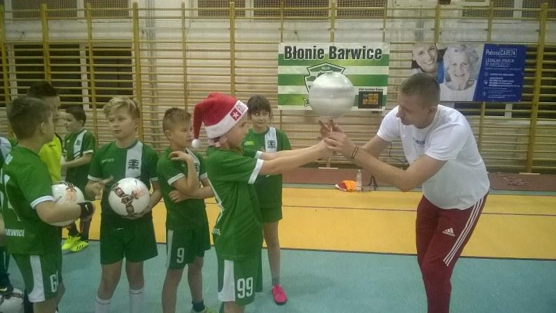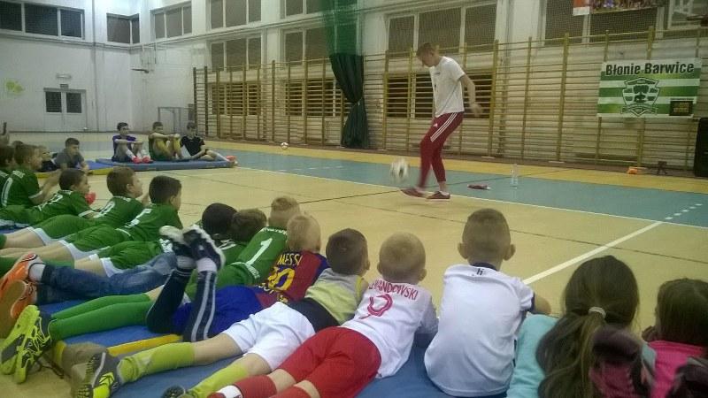 6 grudnia w hali Zespołu Szkół w Barwicach odbył się Mikołajkowy Pokaz oraz Warsztaty freestylowe. Poprowadził je Mistrz Polski oraz ćwierćfinalista Mistrzostw Europy i Świata Dawid Krzyżowski. Dzieci, młodzież, rodzice oraz sympatycy klubu Błonie Barwice mieli okazję zobaczyć niesamowite umiejętności akrobatyczne w połączeniu z niewiarygodną kontrolą piłki. Całość odbyła się przy dźwiękach rytmicznej muzyki. Po pokazie były pytania. Dowiedzieliśmy się m.in. jak długo trzeba trenować, żeby osiągnąć taki mistrzowski poziom, a także o występach w różnych częściach naszego globu. W dalszej części przeszliśmy do czynów, odbyły się bowiem warsztaty freestylowe. Dawid pokazał jak wykonywać poszczególne triki z piłką. Na koniec wręczył zdjęcia wraz z autografem. W trakcie spotkania pomocnicy Świętego Mikołaja częstowali słodkościami.