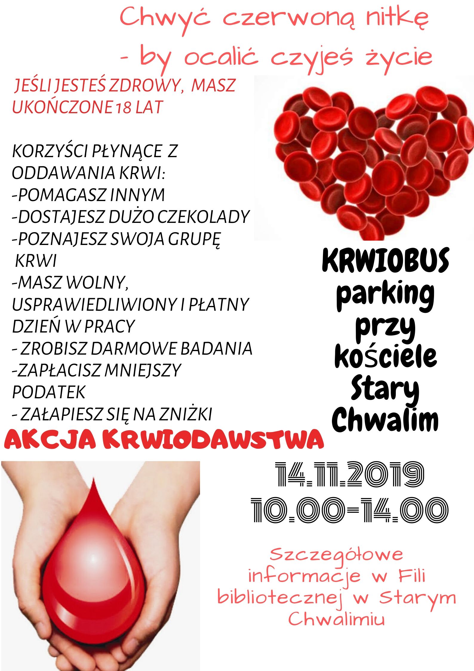 Zapraszamy wszystkie osoby, które chcą i mogą podzielić się tym najcenniejszym darem, jakim jest krew do ,,Mobilnego krwiobusa " z Regionalne Centrum Krwiodawstwa i Krwiolecznictwa w Szczecinie.