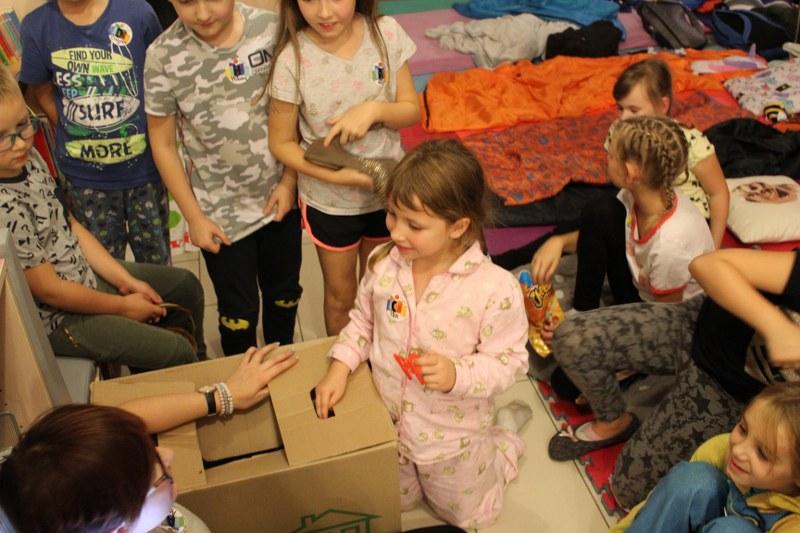 Dla stworzenia nastroju dzieci wykonały klosze na lamki nocne ze zdjęć rentgenowskich. Na warsztatach komiksowych tworzyliśmy bohatera komiksu (nasze serca skradła „Bombowa Sowa”. Była „tajemnicza skrzynia” ze skarbami - symbolami baśni, lektur, bajek. Wszyscy wspólnie bawiliśmy się w „pomidora”, „skojarzenia”, „mafię”, „bezludną wyspę”, graliśmy w gry planszowe. Po północy chętni śmiałkowie wysłuchali „strasznych historii”.