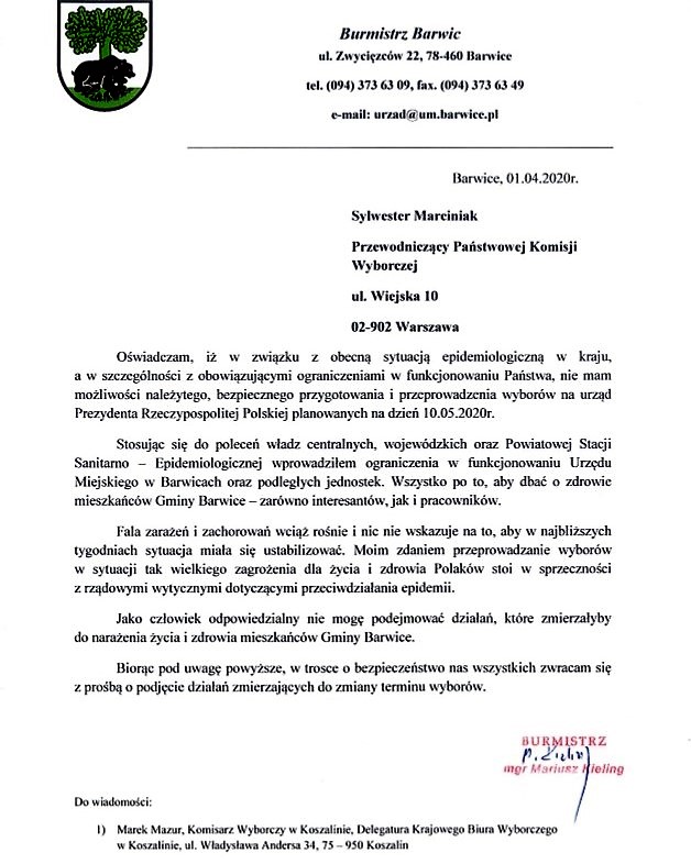Oświadczenie Burmistrza Barwic dotyczące wyborów.