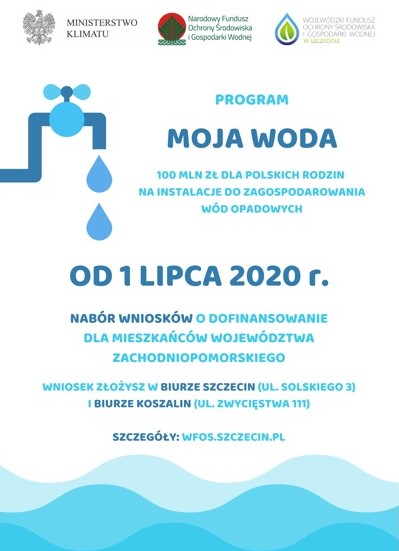 Wojewódzki Fundusz Ochrony Środowiska i Gospodarki Wodnej w Szczecinie w odpowiedzi na liczne telefony i duże zainteresowanie Beneficjentów Programem Priorytetowym Moja Woda informuje, że nabór wniosków w ramach ww. Programu zostanie uruchomiony od dnia 1 lipca 2020 r.